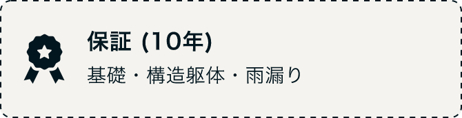 お引き渡しから10年間の間、上記の部分(雨漏りや構造上の欠陥)について欠陥が見つかった場合補償いたします。