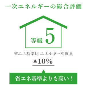 「一次エネルギー消費量削減の程度」を等級で示します。