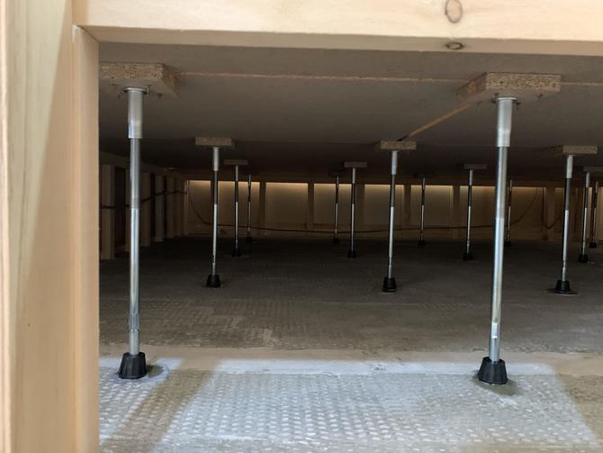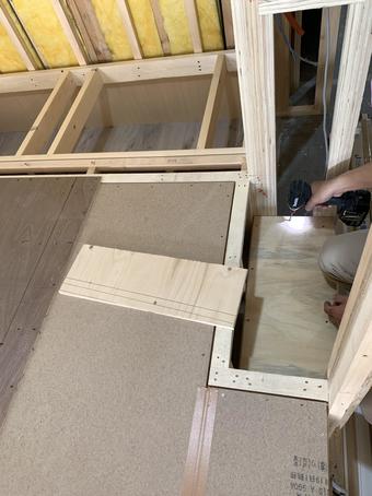 右写真:シャワールームが排水の関係上高くなってしまった為、ステップを設置する事に。